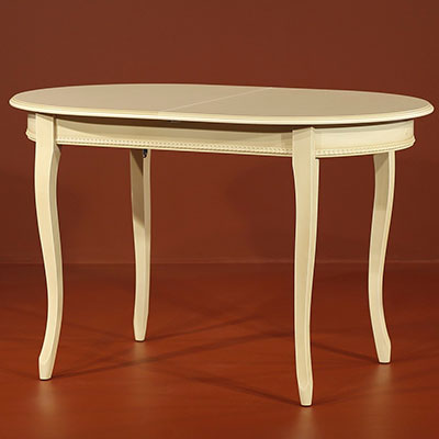 Все элементы стола за исключением столешницы выполнены из массива береза. Столешницы изготавливаются из экологически чистых плит МДФ и, согласно технологии, облицовываются натуральным или искусственным шпоном. Стол оснащен несинхронным механизмом раскладывания.